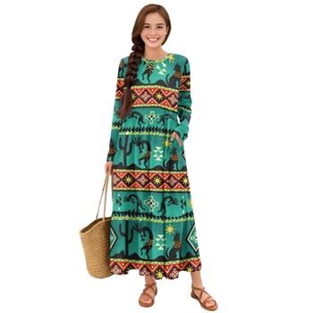 Abito da donna con motivo azteco in stile Vintage abito tascabile a manica lunga Boho Chic e tribale alla moda da donna