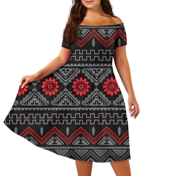 Fashional özel tasarım kapalı omuz batı giyim kadın aztek baskı elbise